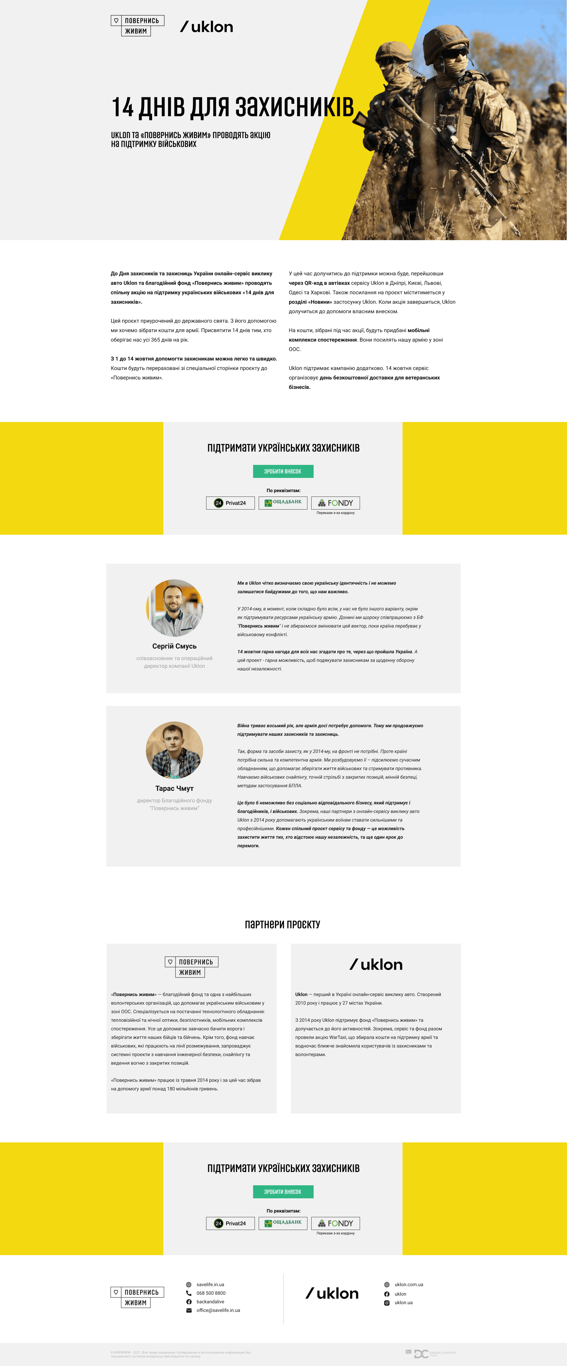 Співпраця з Uklon: Великий блок інформації про партнерство з “Uklon” надає відвідувачам додаткові інцентиви для участі в акції. Зручність та легкість донату через платформу таксі додають аспектів комфорту та доступності.