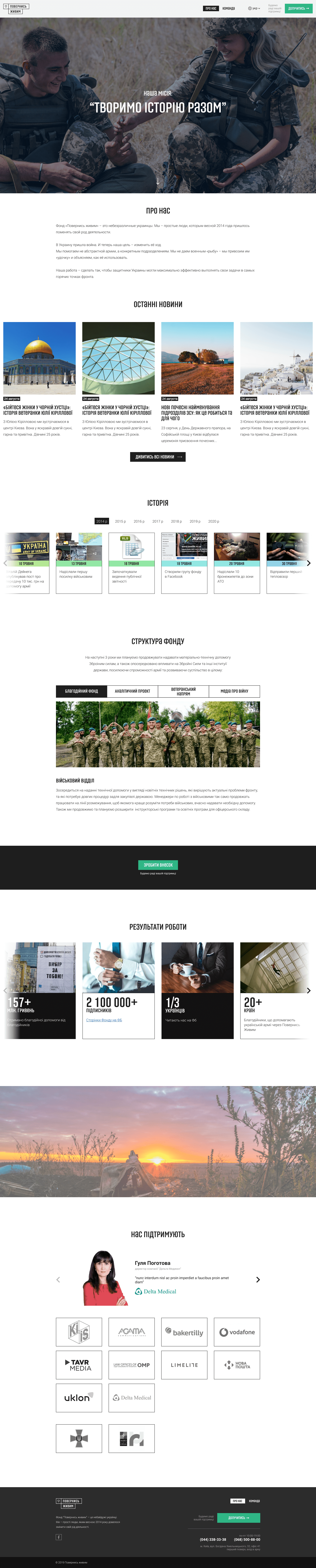 Вызывающий дизайн действия: Наша цель была не только создать привлекательный веб-сайт, но и привлечь посетителей к участию в благотворительных инициативах. Цветовая палитра и графические элементы способствуют позитивному восприятию и подчеркивают важность миссии “Вернись Живым”.