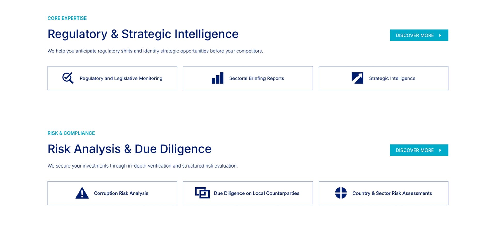 Основная цель сайта – представить экспертизу компании, объяснить сложные консалтинговые услуги и создать понятную структуру для международных клиентов и инвесторов.
